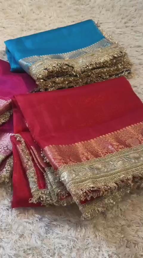 Like moonlight draped around you, the Banaras Tissue saree glows with understated beauty and royal charm.