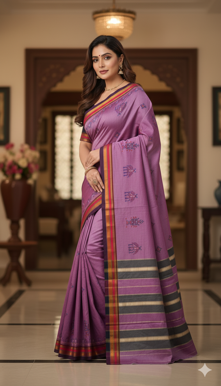 Sometimes simplicity speaks louder than ornamentation. This Ilkal Kasuti Plain saree carries that quiet confidence.