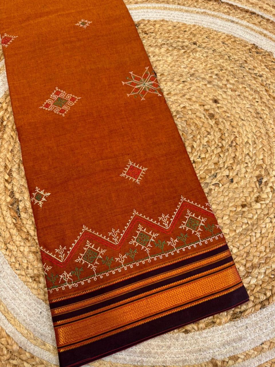 The fine art of Kasuti embroidery meets the strength of Ilkal weave in this Star design saree.