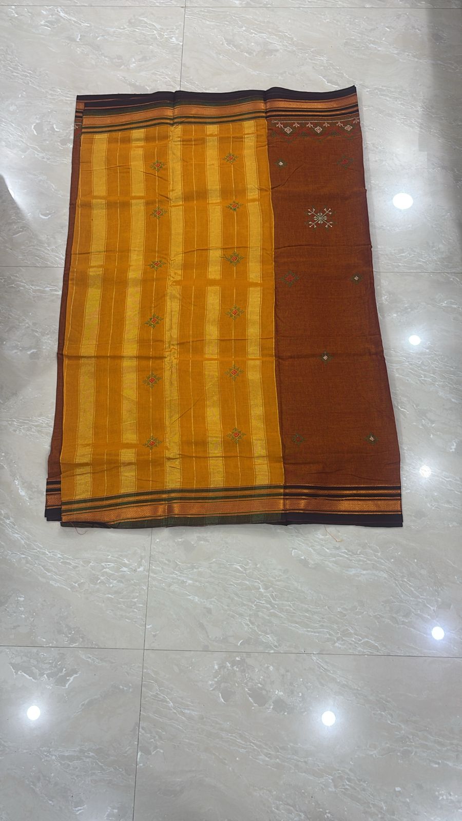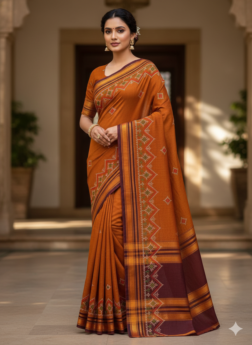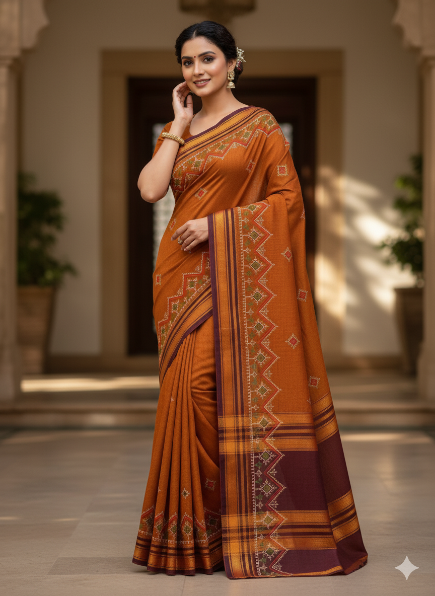 Star-pattern embroidery on durable Ilkal fabric.